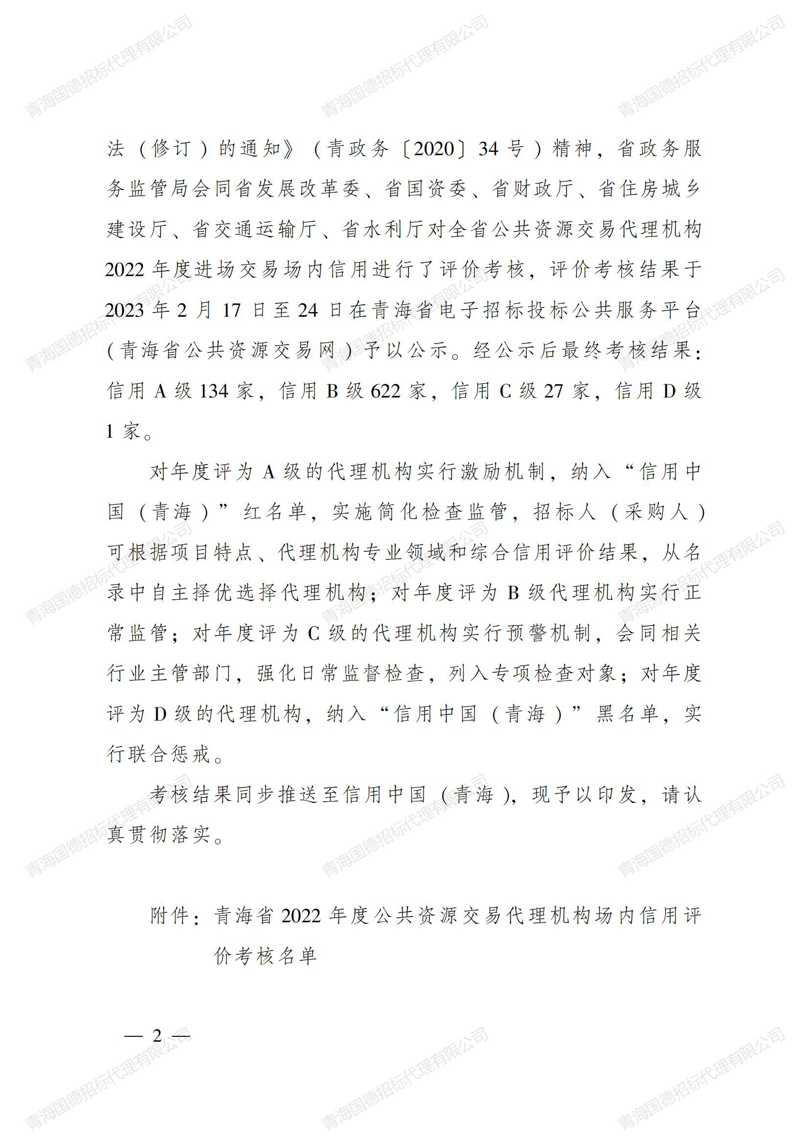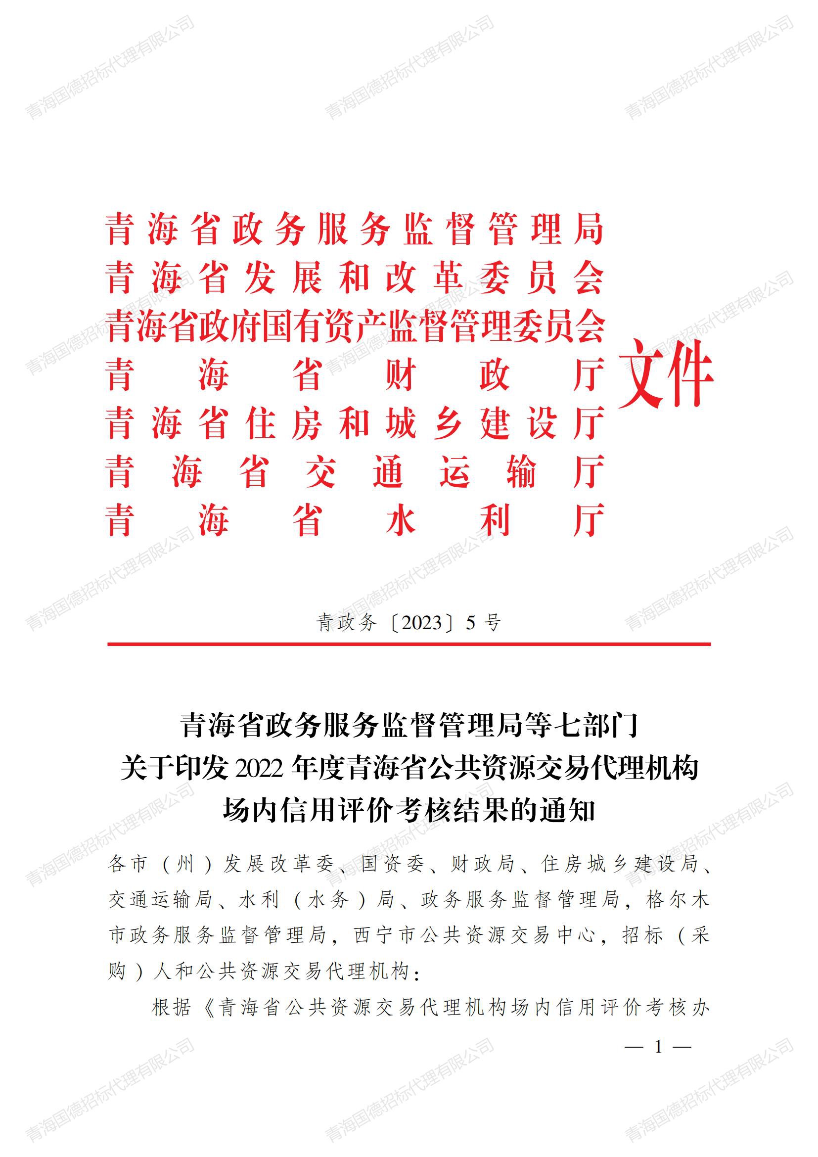 青海省政務(wù)服務(wù)監(jiān)管局會(huì)同省發(fā)展改革委、省國(guó)資委、省財(cái)政廳、省住房城鄉(xiāng)建設(shè)廳、省交通運(yùn)輸廳、省水利廳對(duì) 2022 年度全省784家代理機(jī)構(gòu)進(jìn)行了評(píng)價(jià)考核,我公司榮獲A級(jí)代理機(jī)構(gòu)。 感恩大家支持與關(guān)心!