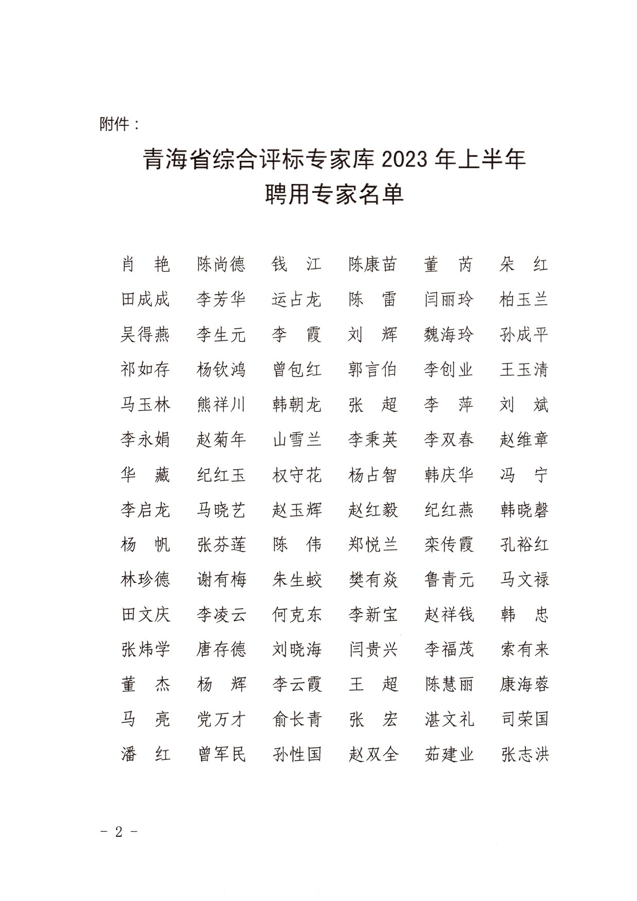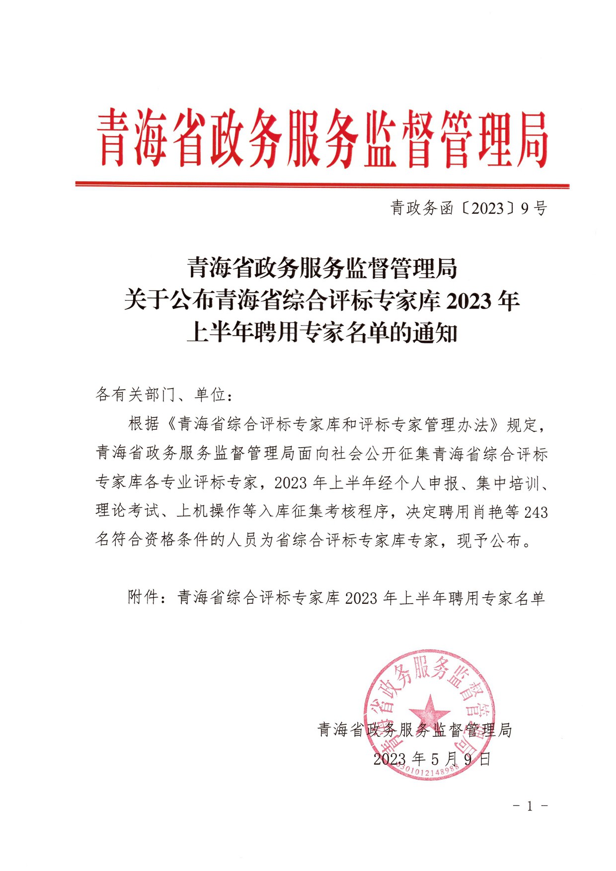 關(guān)于公布青海省綜合評(píng)標(biāo)專家?guī)?023年上半年聘用專家名單的通知