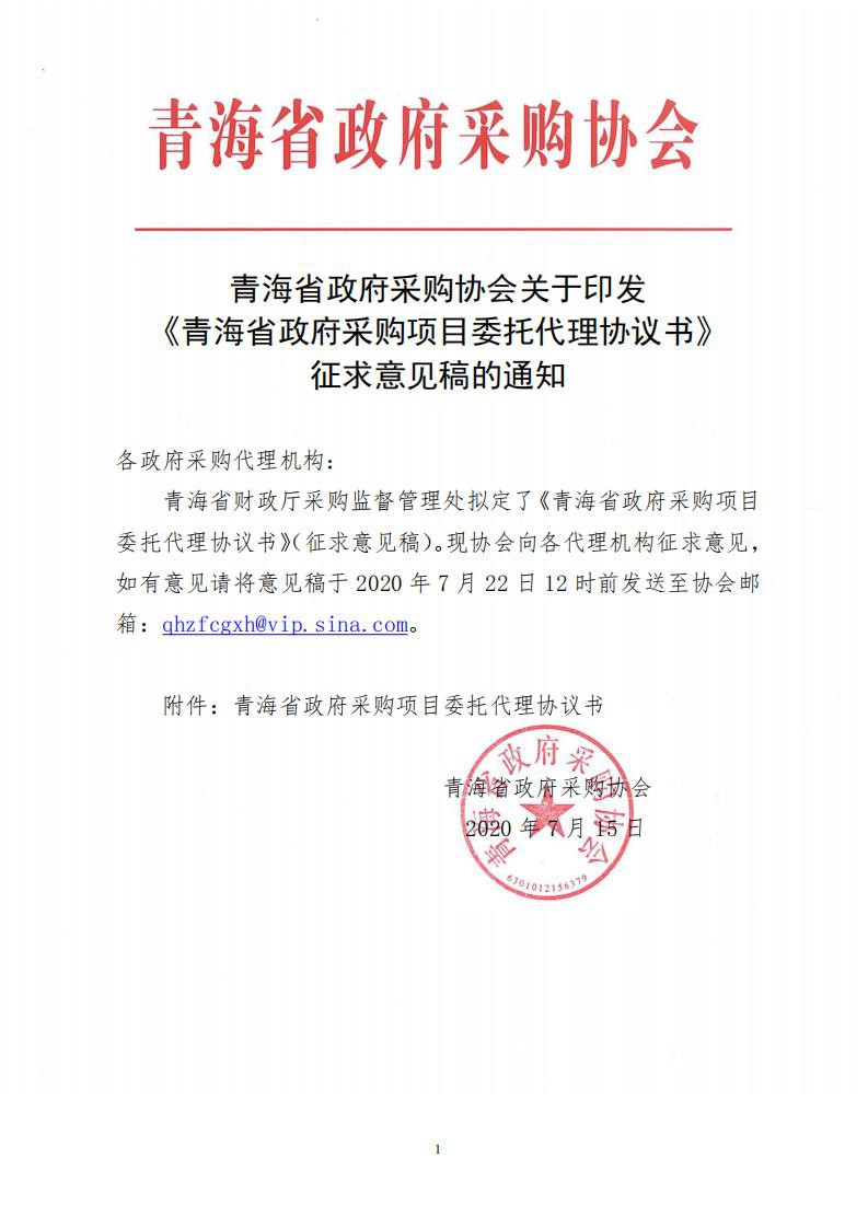 青海省政府采購協(xié)會關(guān)于印發(fā)《青海省政府采購項(xiàng)目委托代理協(xié)議書》征求意見稿的通知