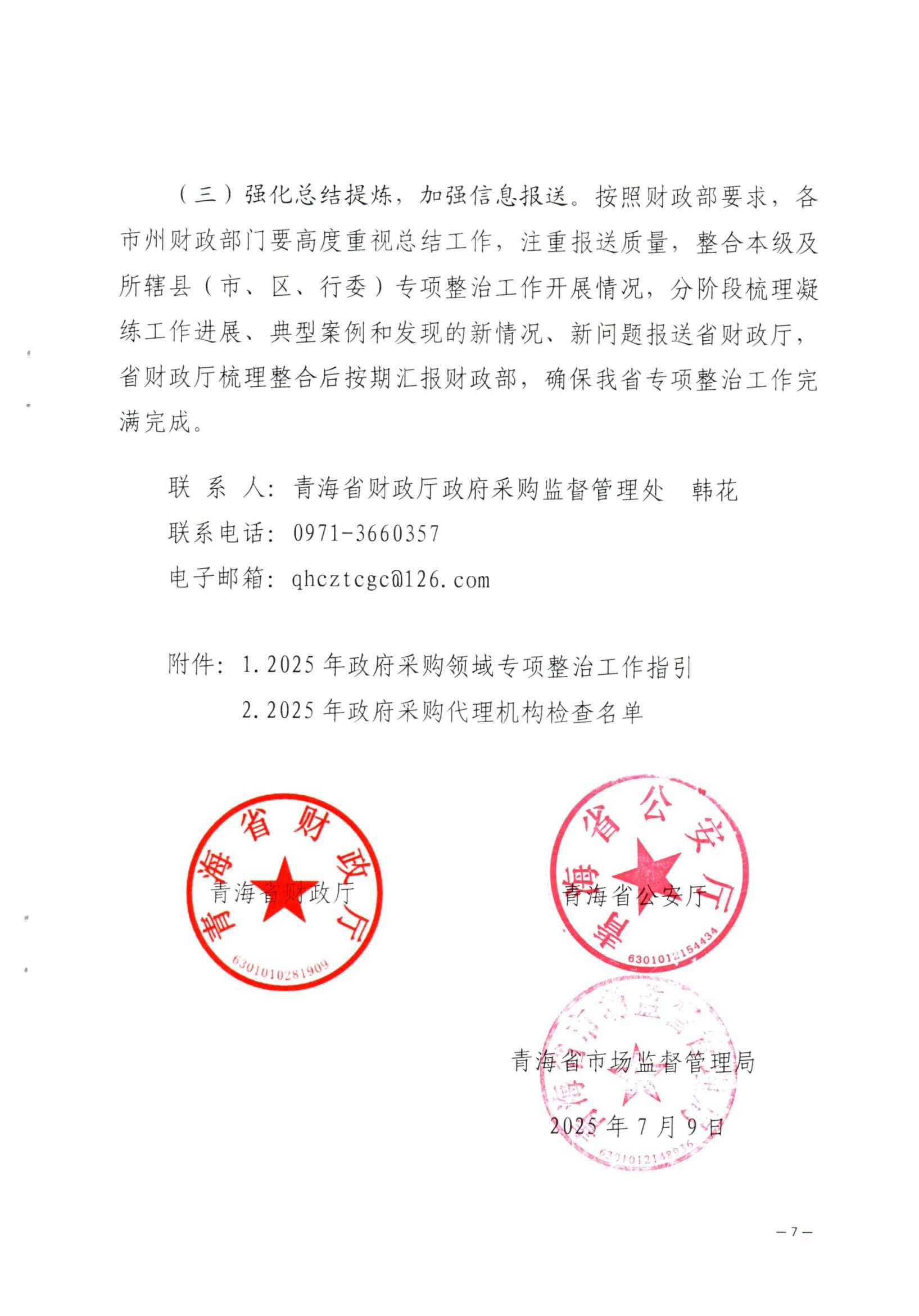 青海省財(cái)政廳 青海省公安廳 青海省市場監(jiān)督管理局 關(guān)于開展 2025年政府采購領(lǐng)域“四類” 違法違規(guī)行為專項(xiàng)整治工作的通知