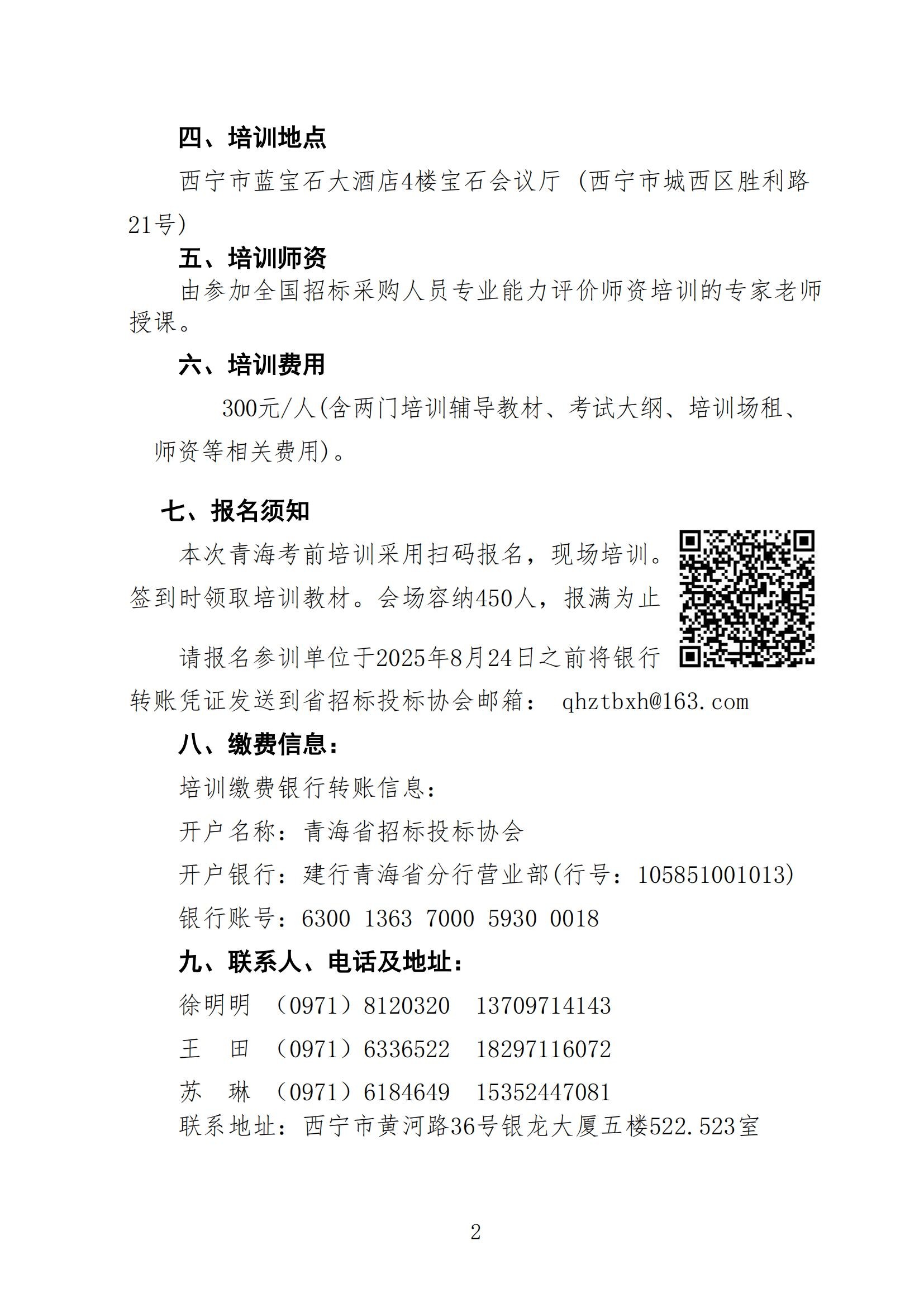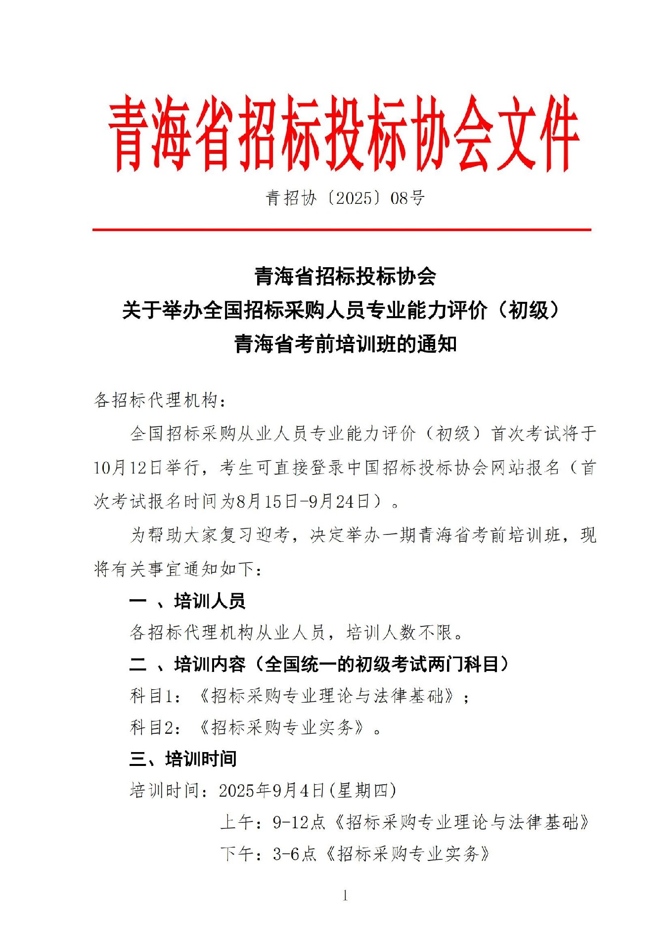 青海省招標(biāo)投標(biāo)協(xié)會(huì) 關(guān)于舉辦全國(guó)招標(biāo)采購(gòu)人員專業(yè)能力評(píng)價(jià)(初級(jí)) 青海省考前培訓(xùn)班的通知