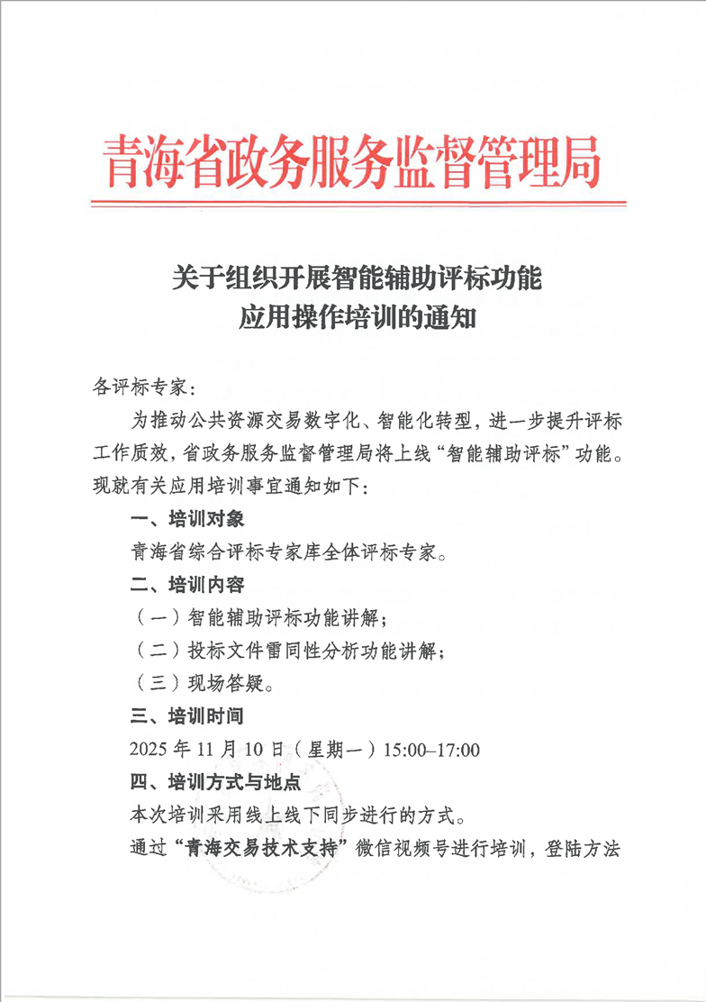 關(guān)于組織開展智能輔助評標(biāo)功能應(yīng)用操作培訓(xùn)的通知