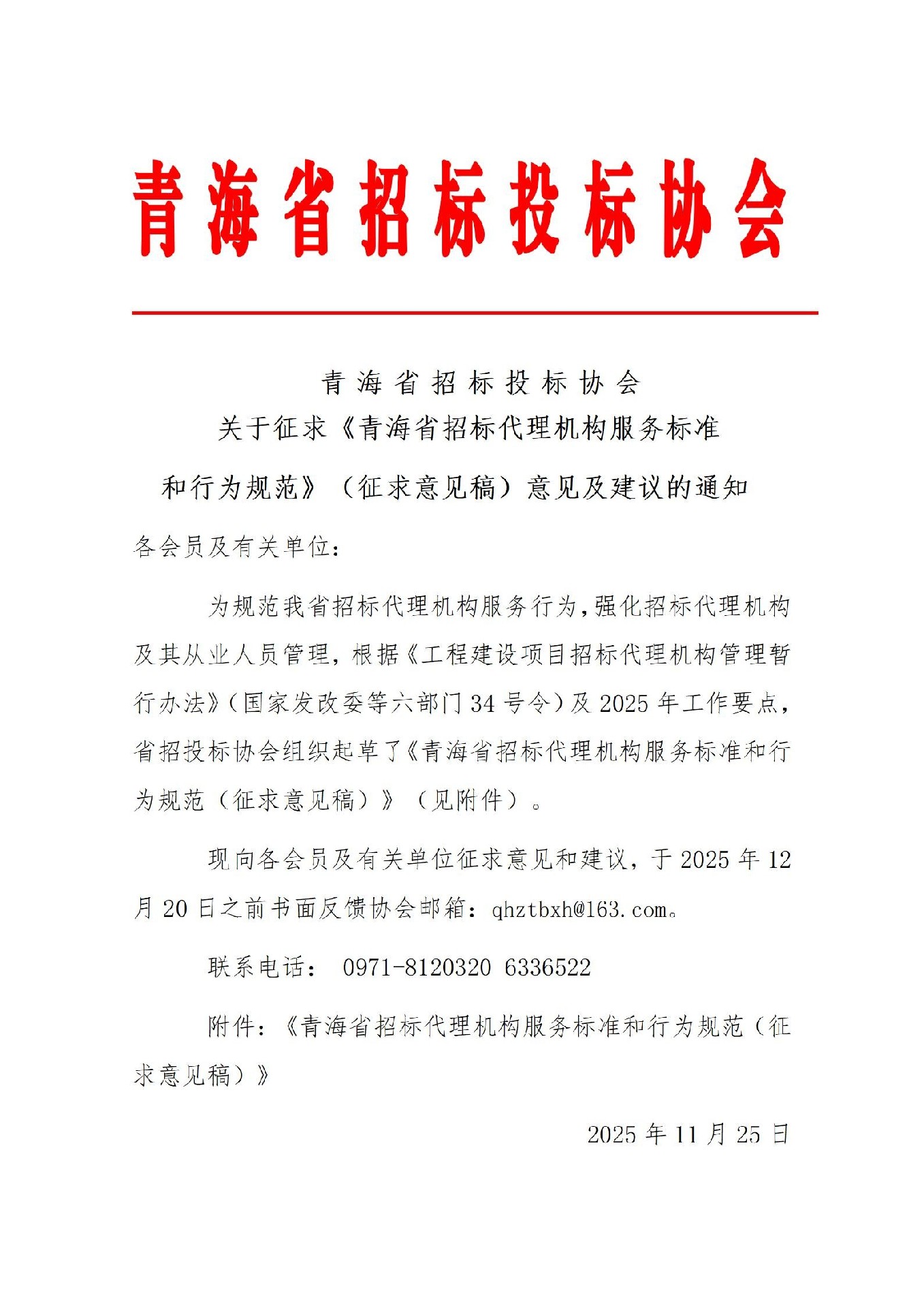 轉(zhuǎn)發(fā)青海省招標(biāo)投標(biāo)協(xié)會關(guān)于征求《青海省招標(biāo)代理機(jī)構(gòu)服務(wù)標(biāo)準(zhǔn) 和行為規(guī)范》(征求意見稿)意見及建議的通知
