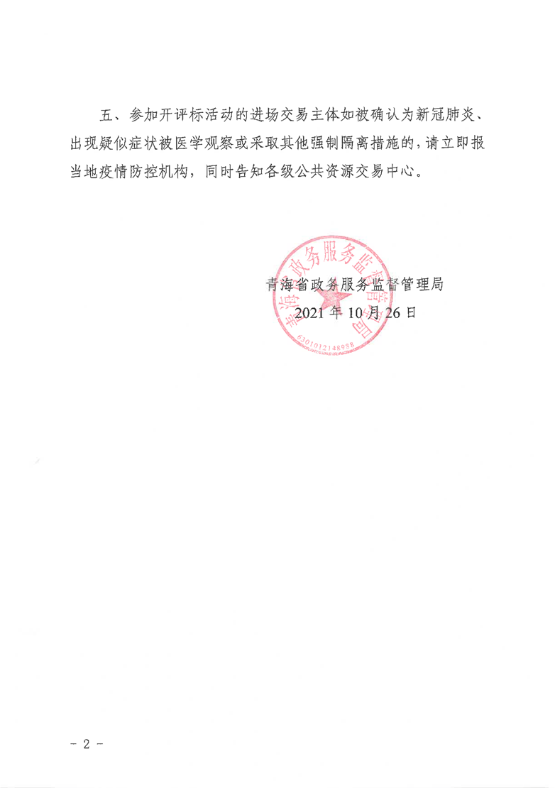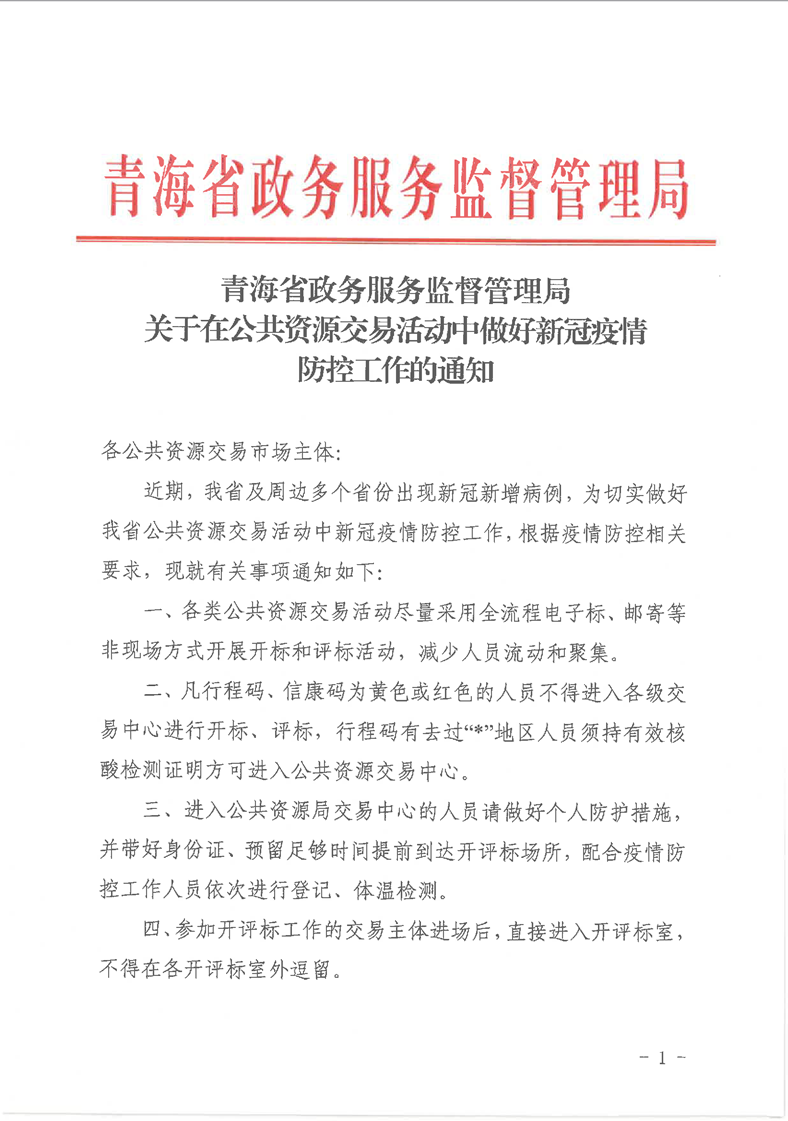 青海省政務(wù)服務(wù)監(jiān)督管理局關(guān)于在公共資源交易活動(dòng)中做好新冠疫情防控工作的通知