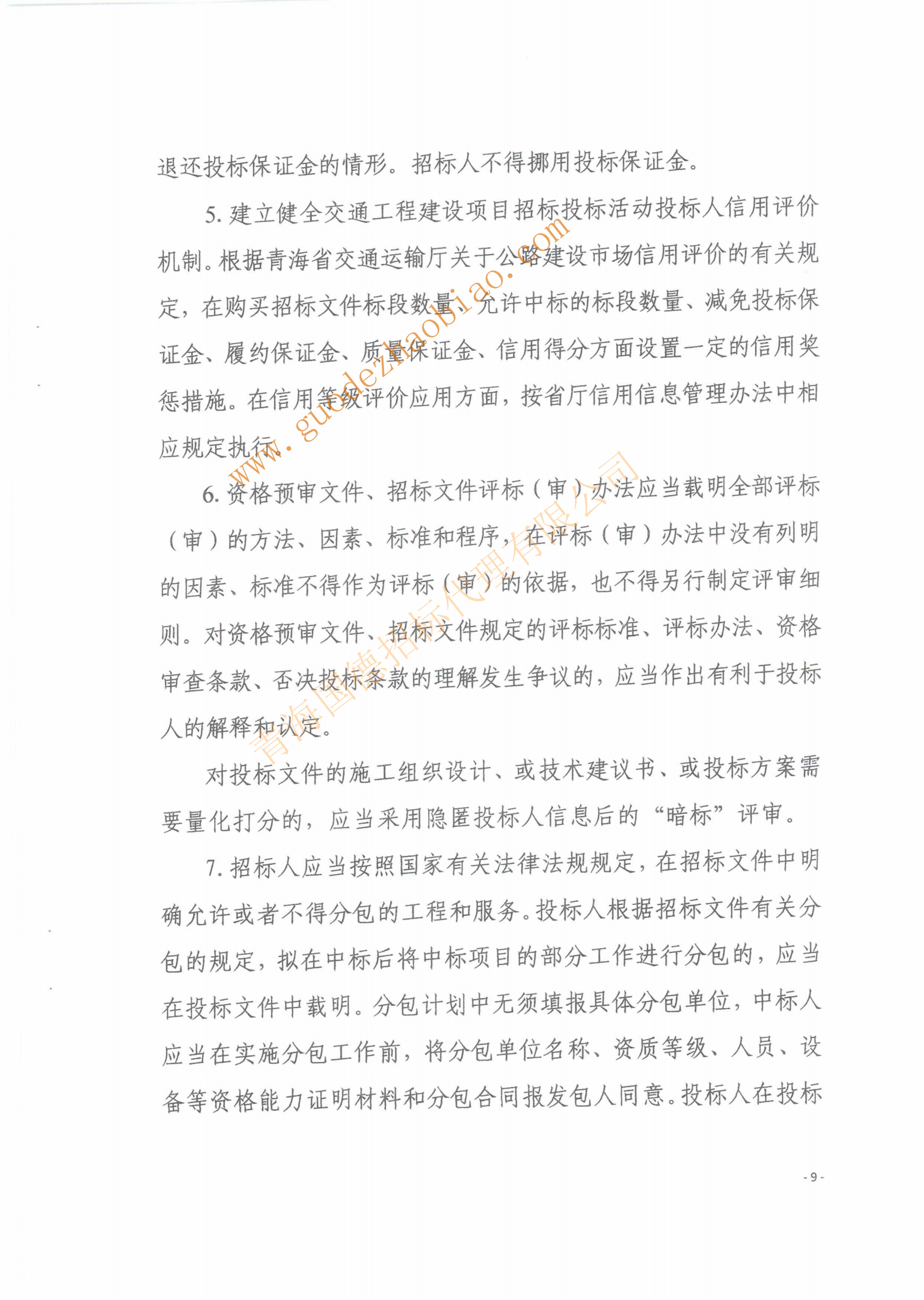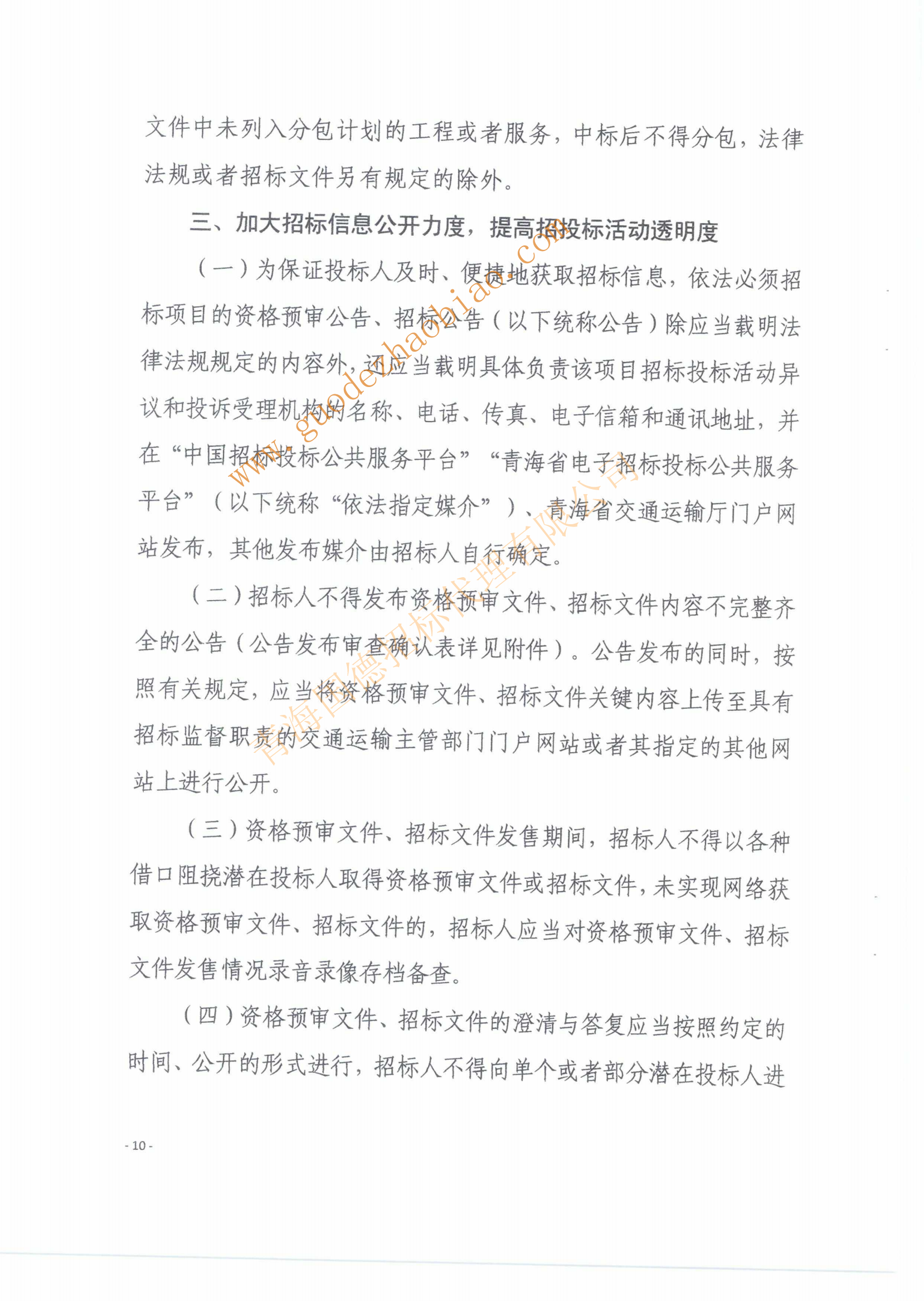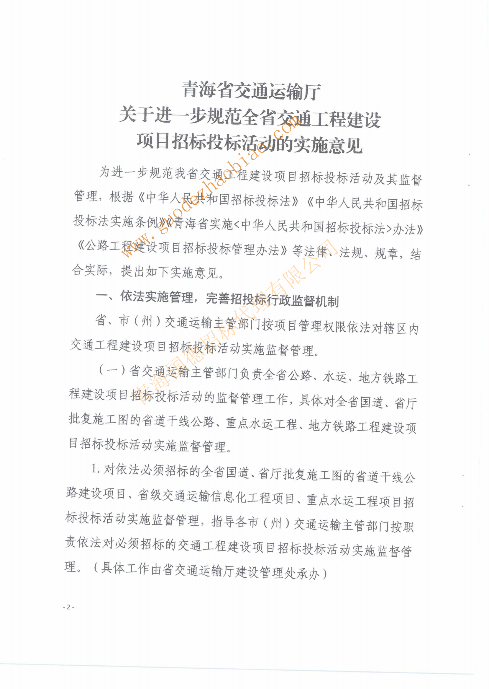 轉(zhuǎn)發(fā)青海省交通運(yùn)輸廳關(guān)于印發(fā)《關(guān)于進(jìn)一步規(guī)范全省交通工程建設(shè)項(xiàng)目招標(biāo)投標(biāo)活動(dòng)的實(shí)施意見》的通知