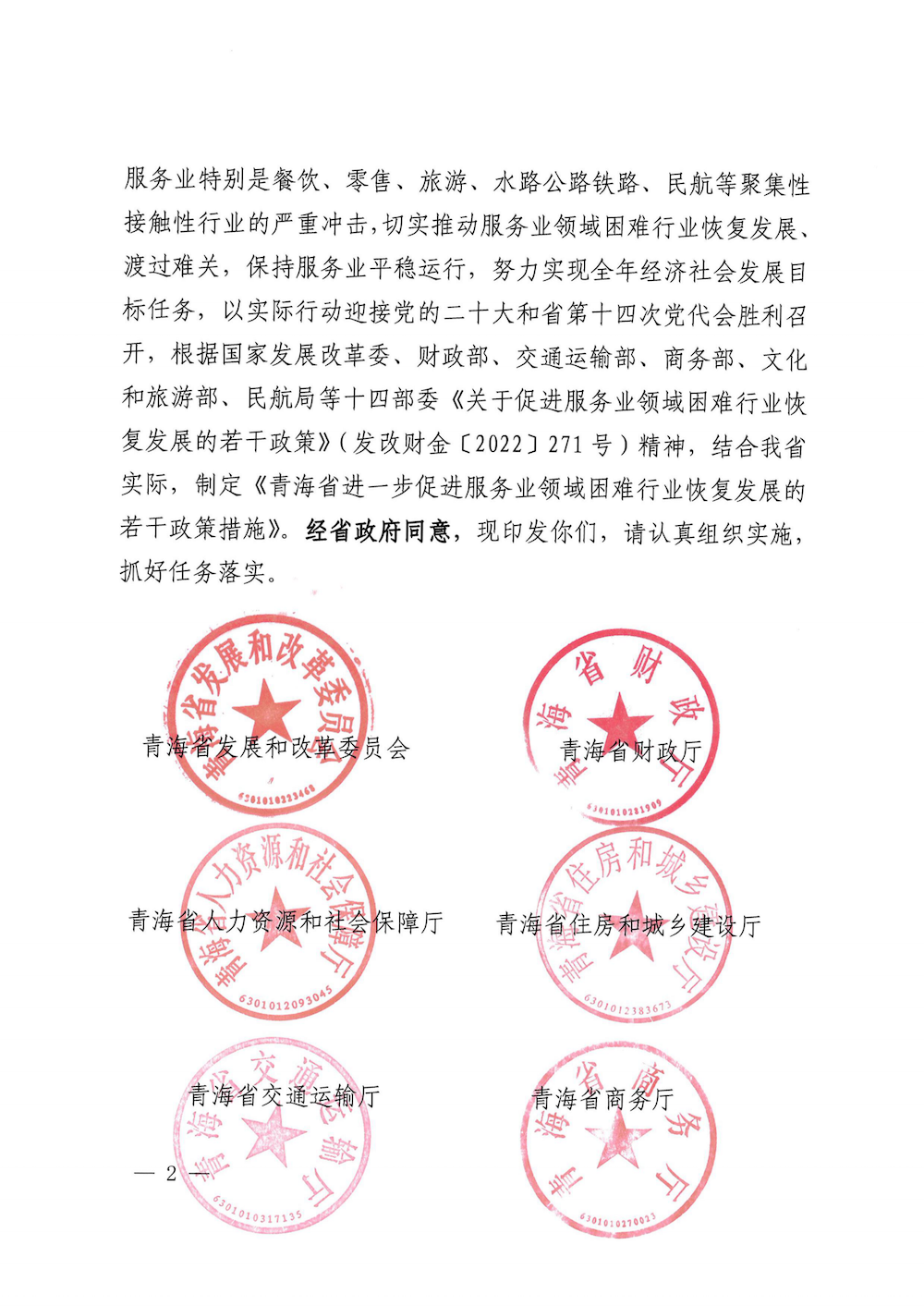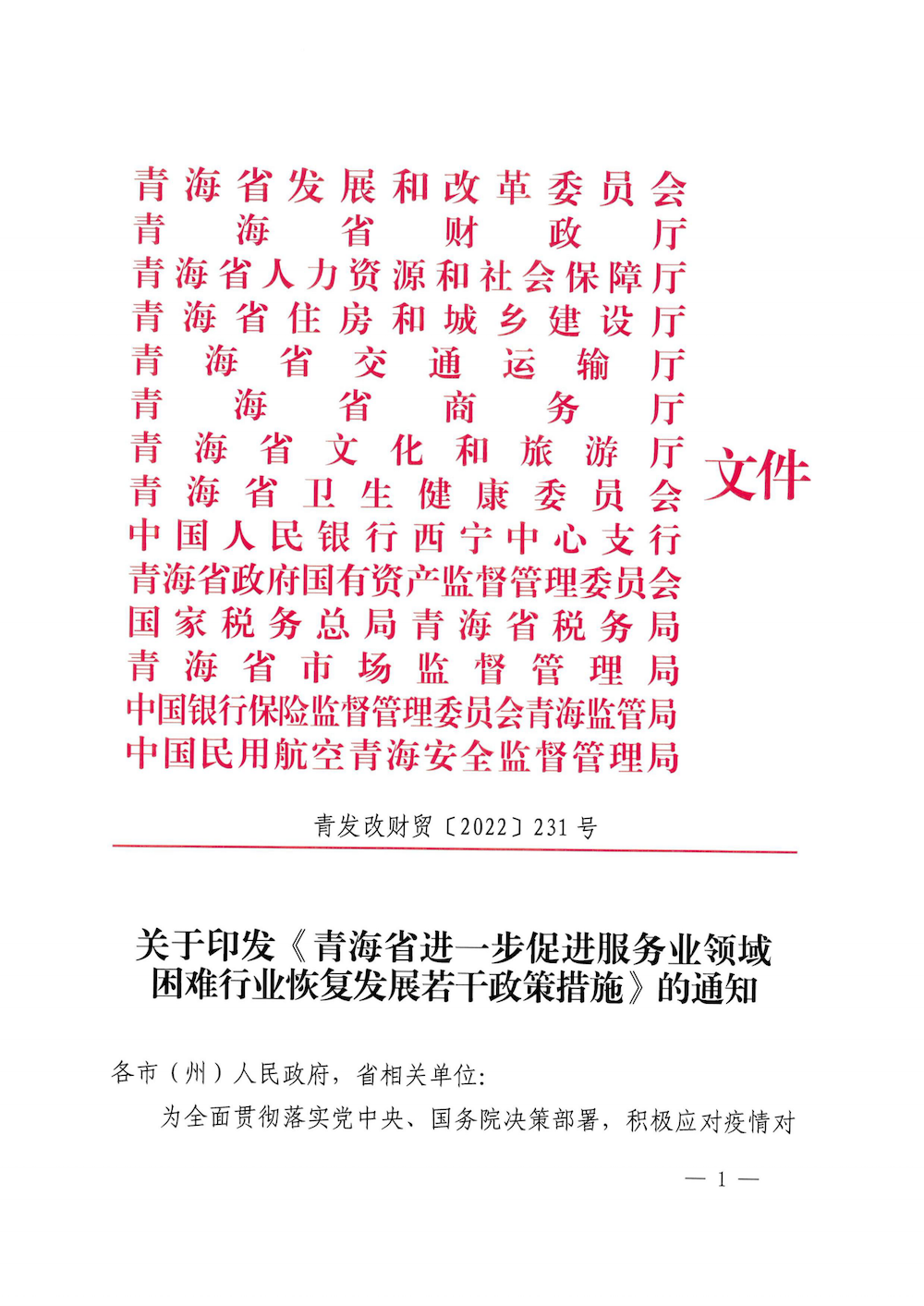 轉(zhuǎn)發(fā)《青海省進(jìn)一步促進(jìn)服務(wù)業(yè)領(lǐng)域困難行業(yè)恢復(fù)發(fā)展若干政策》的通知(青發(fā)改財(cái)貿(mào)〔2022〕231號)