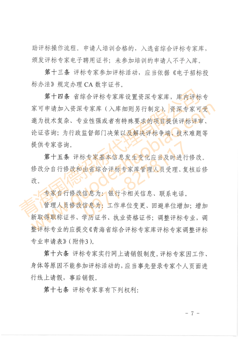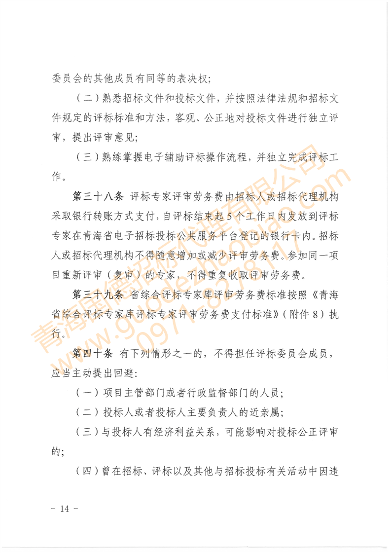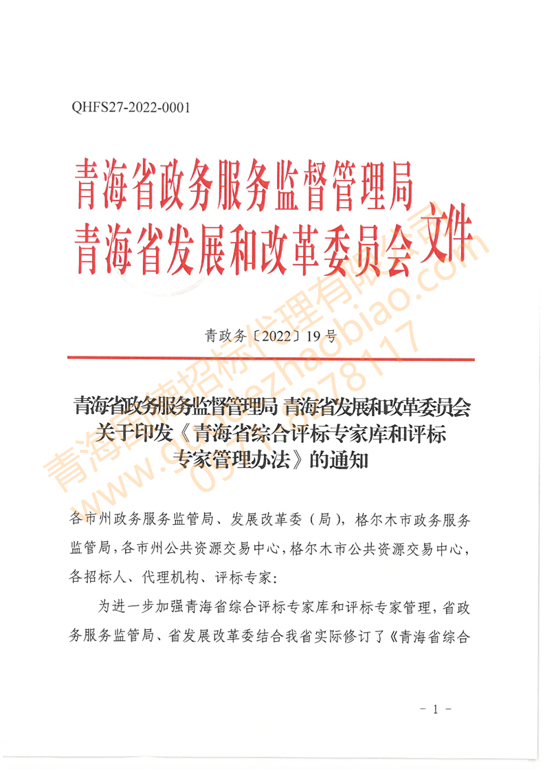 轉(zhuǎn)發(fā)關(guān)于印發(fā)《青海省綜合評標專家?guī)旌驮u標專家管理辦法》的通知