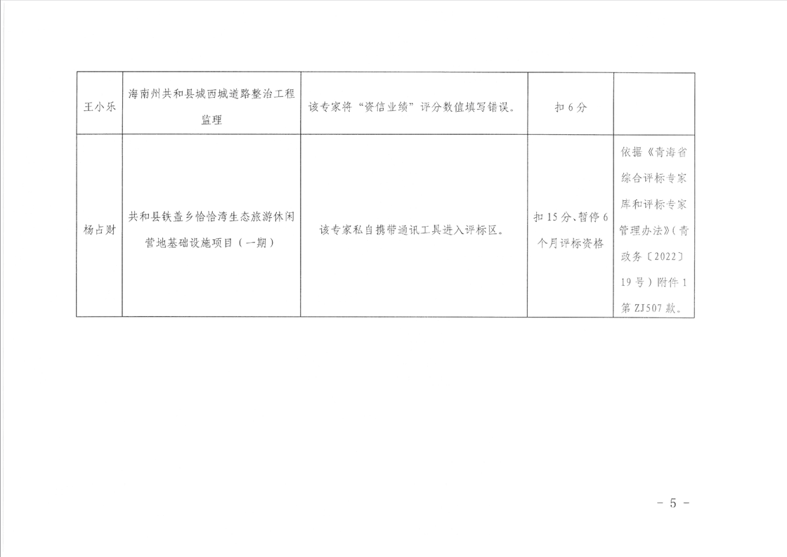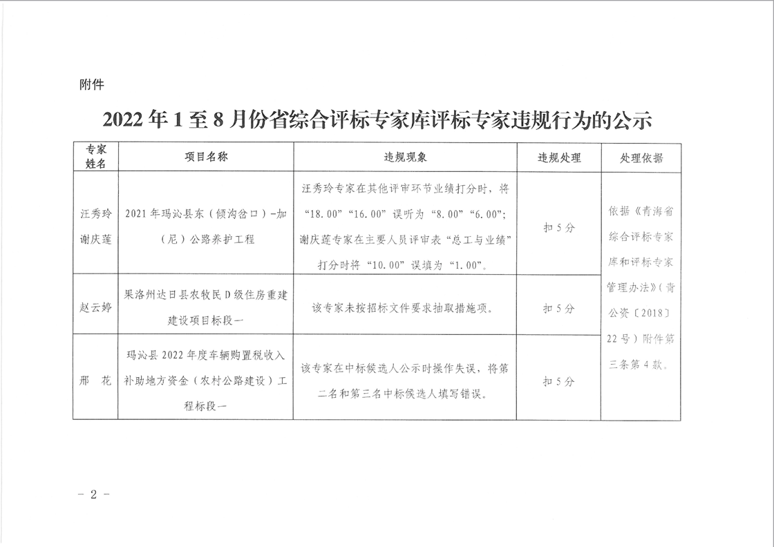 關(guān)于2022年省綜合評(píng)標(biāo)專家?guī)煸u(píng)標(biāo)專家違規(guī)行為及處理情況的通報(bào)(第一批)