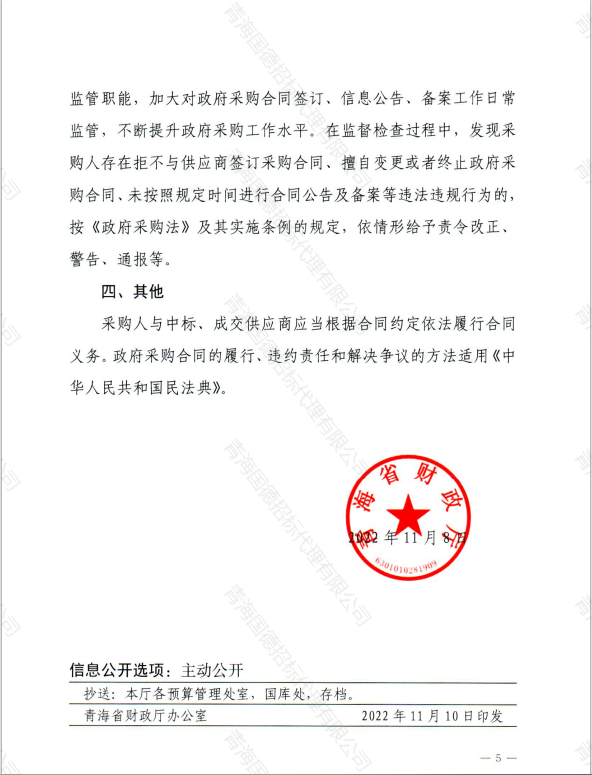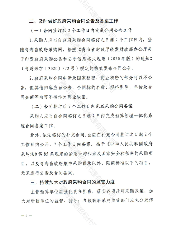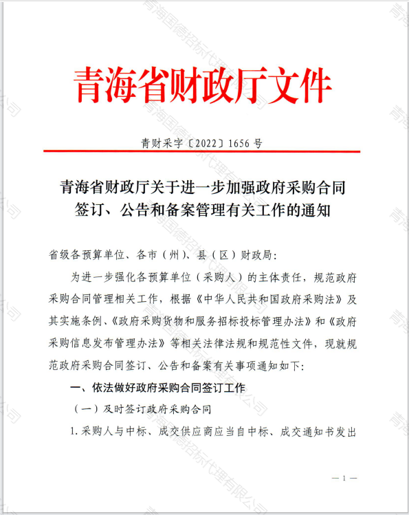 青海省財(cái)政廳關(guān)于進(jìn)一步加強(qiáng)政府采購(gòu)合同簽訂、公告和備案管理有關(guān)工作的通知